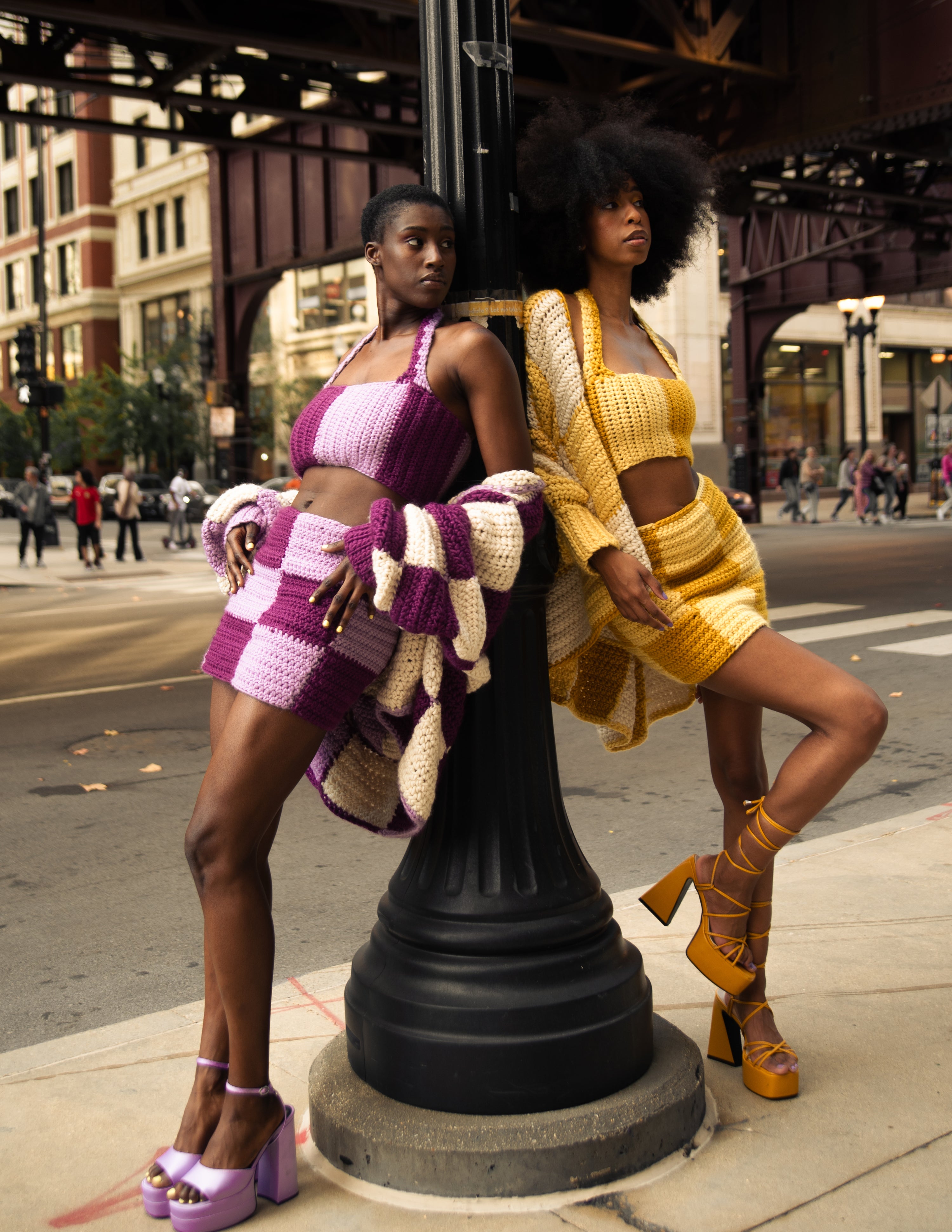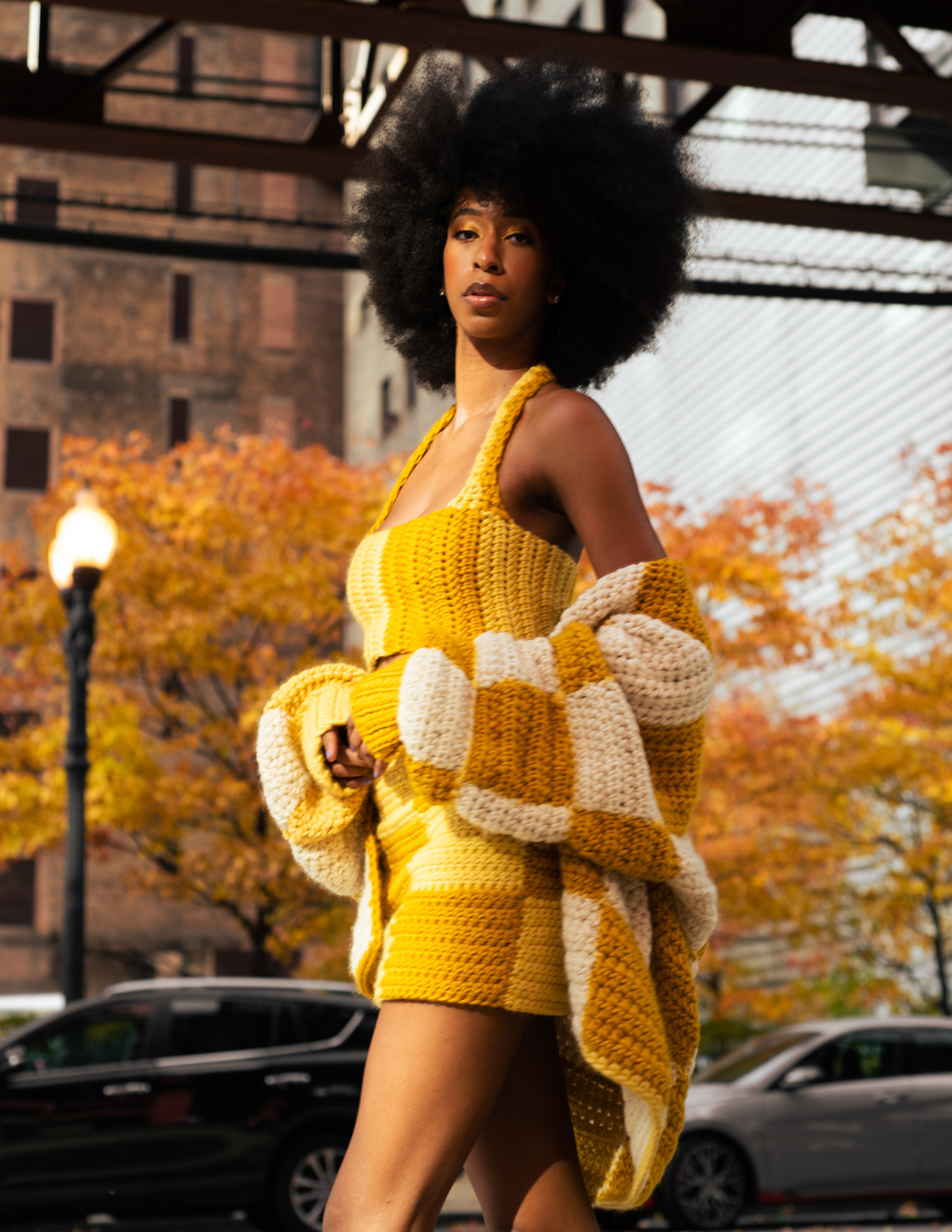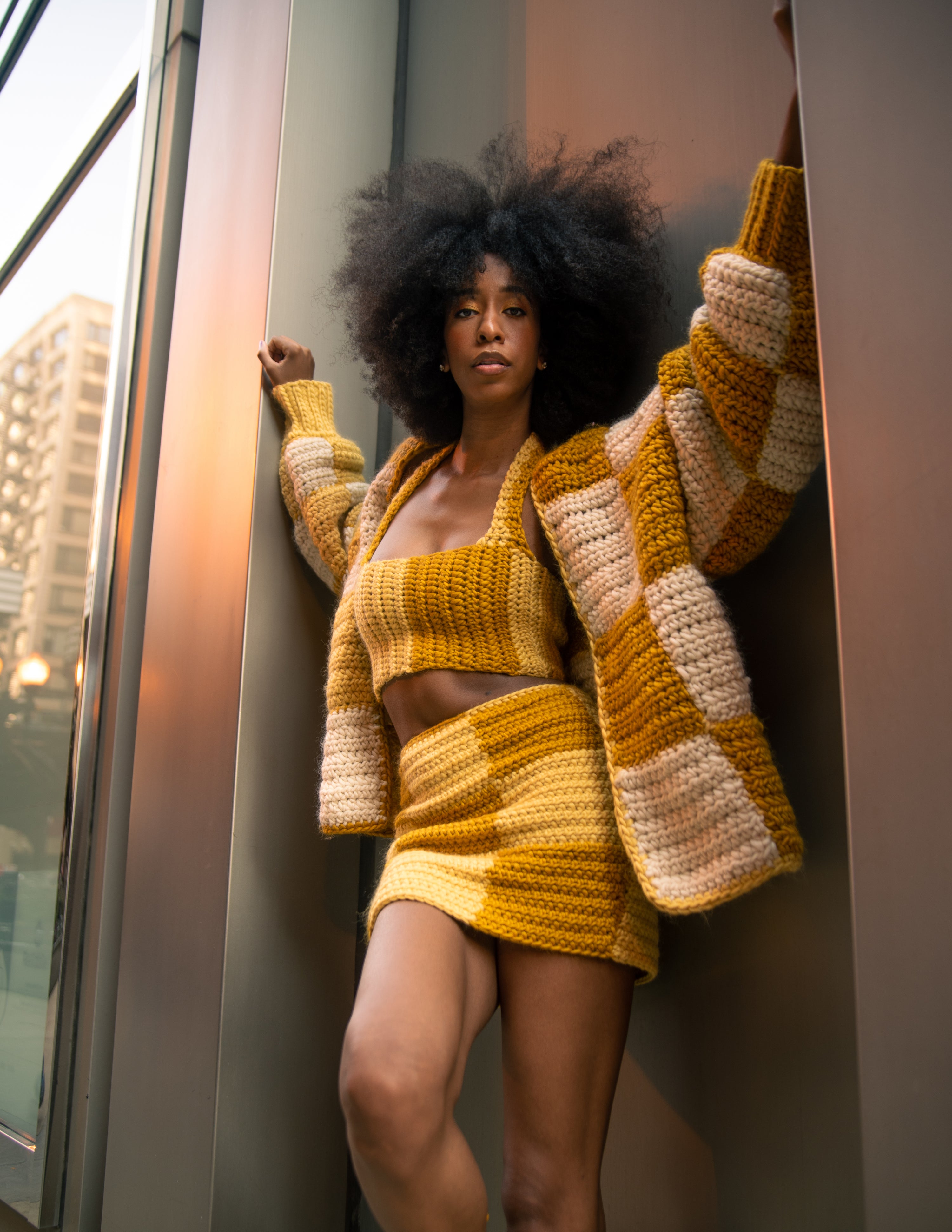 The idea of contrasting colors first came to me when I saw a trend of Black women dyeing their hair in two different colors, split right down the middle. There was something about this duality that intrigued me. It also reminded me of the internal conflict I feel as a Black woman existing in this world. My desire to succeed is sometimes stifled by the skin I live in. It feels like I have to choose one identity, one place to exist in. Two-ness tears the notion of one choice apart. All of the different pieces of ourselves is what makes us who we are. Get rid of the notion that Black and Beautiful don’t coexist. That Woman and Leader don’t coexist. That Fear and Strength don’t coexist. This collection is about embracing the power of all that you can be. Where all of you is valued, accepted, cherished, and nurtured. Where there are no limits to your potential. Where you can feel at home and free in your own skin.