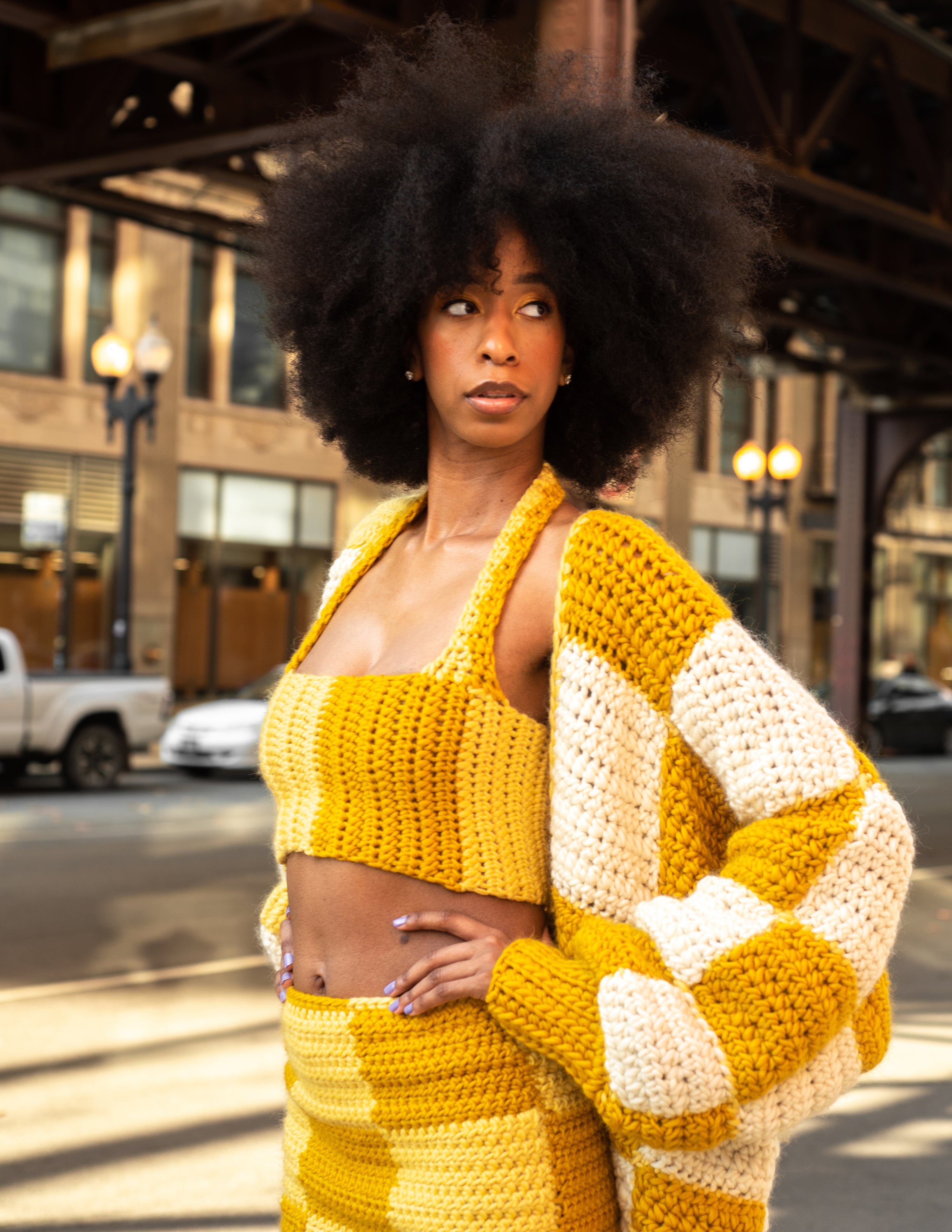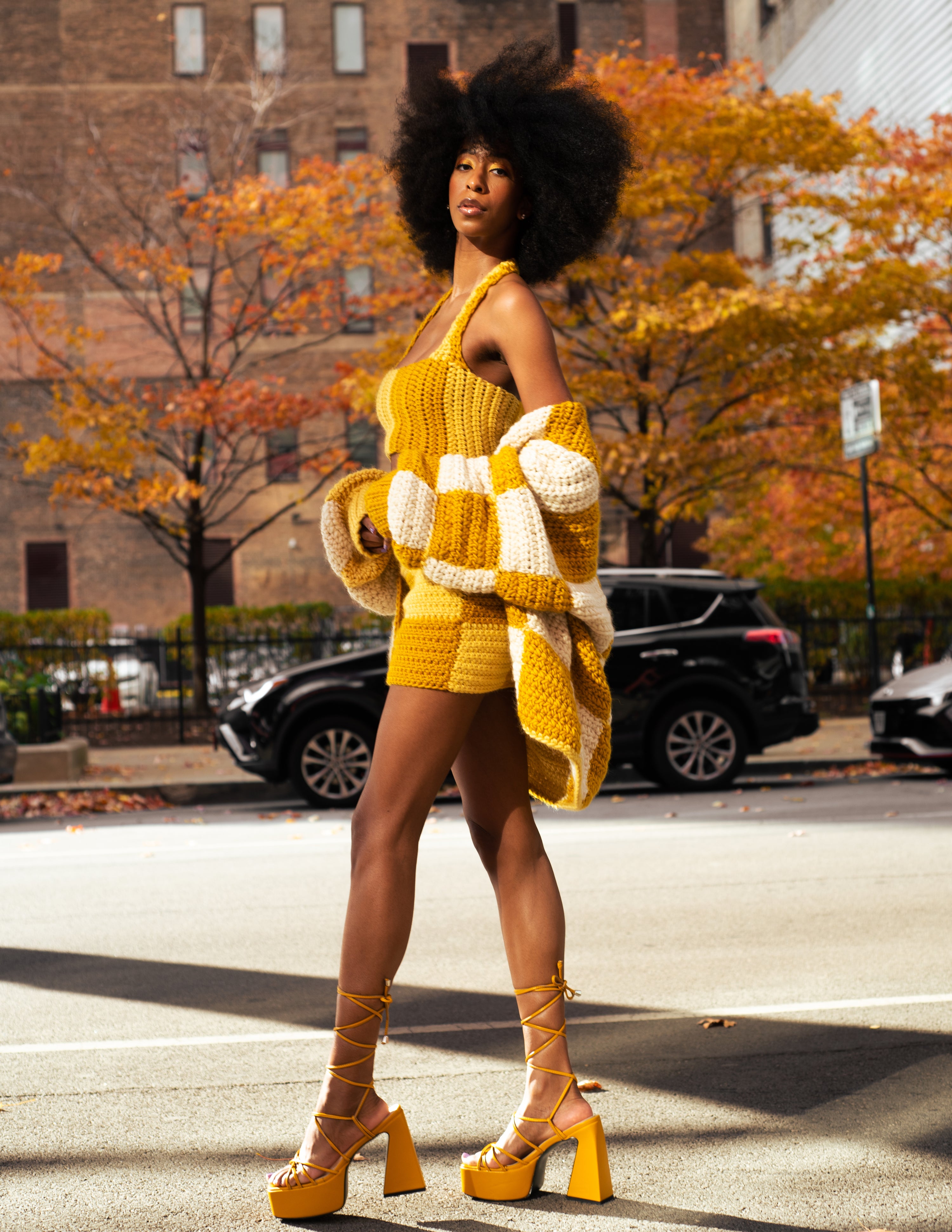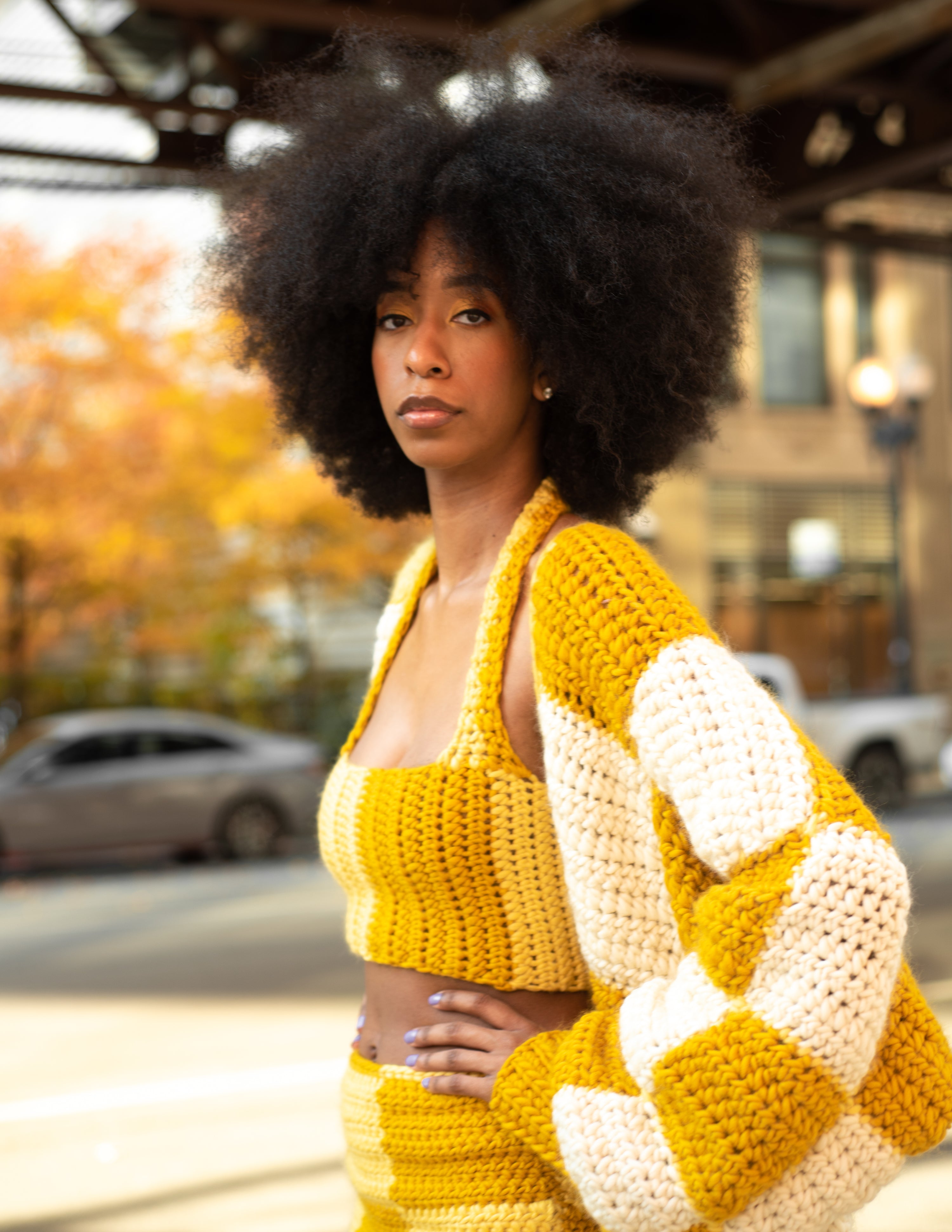 The idea of contrasting colors first came to me when I saw a trend of Black women dyeing their hair in two different colors, split right down the middle. There was something about this duality that intrigued me. It also reminded me of the internal conflict I feel as a Black woman existing in this world. My desire to succeed is sometimes stifled by the skin I live in. It feels like I have to choose one identity, one place to exist in. Two-ness tears the notion of one choice apart. All of the different pieces of ourselves is what makes us who we are. Get rid of the notion that Black and Beautiful don’t coexist. That Woman and Leader don’t coexist. That Fear and Strength don’t coexist. This collection is about embracing the power of all that you can be. Where all of you is valued, accepted, cherished, and nurtured. Where there are no limits to your potential. Where you can feel at home and free in your own skin.