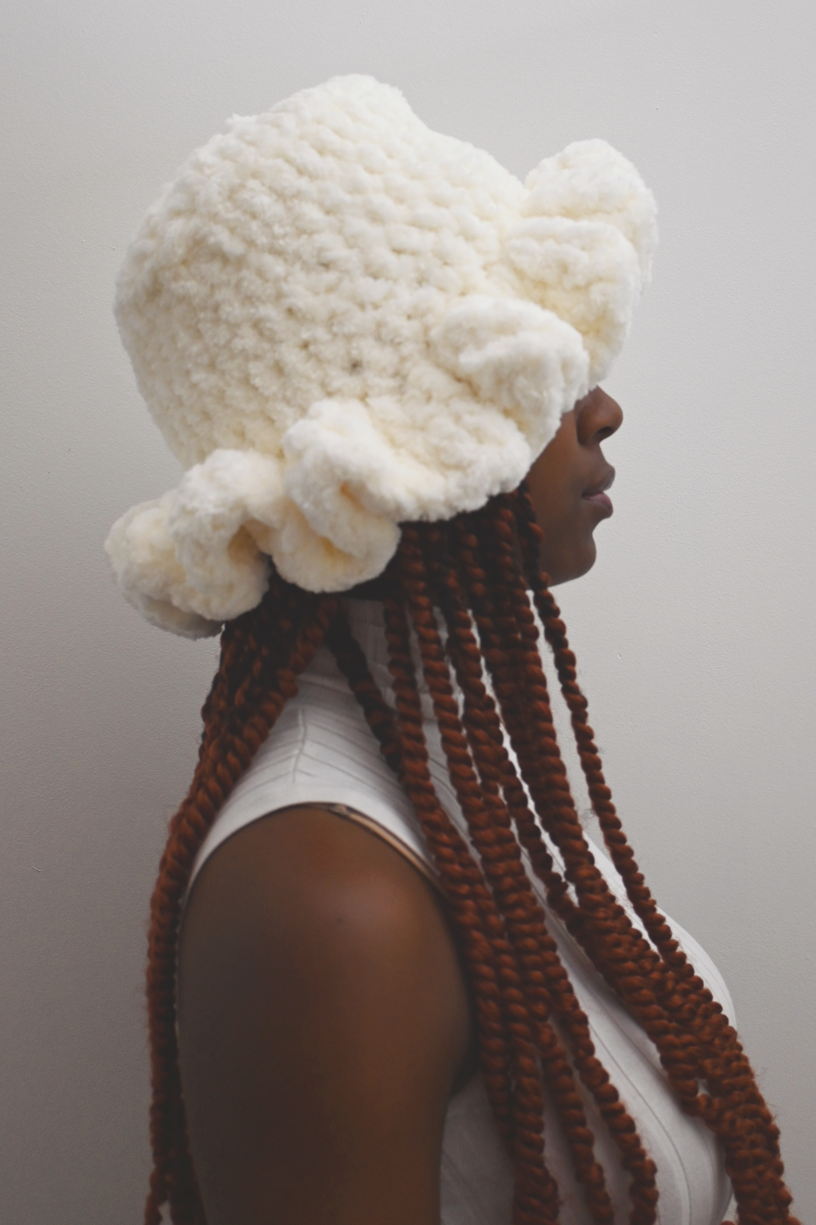 Fluffy, soft bucket hat in cream white.